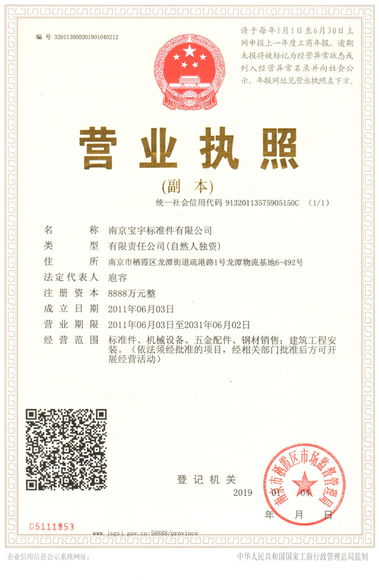 南京寶宇標準件有限公司,專業標準件,真正廠家直銷,成立于1992年,目前占地面積5萬平方米,建筑面積2.6萬平方米,現有熱打車間.冷墩車間、搓絲車間,包裝車間、數控車間、精加工車間、獨立實驗室,主要生產設備200多臺。公司目前擁有約150名員工,其中高級工程師4名,工程師9名,技術人員30名。公司專業生產和研發碳鋼、不銹鋼、銅 標準件、緊固件和非標準件,產品種類有:螺栓、螺釘、螺絲、螺母、平墊、彈墊、螺柱、組合件、非標異型件及精密零件,等多種列。 碳鋼,等級有:4.8級 6.8級 8.8級 10.9級 12.9級,不銹鋼,材質有:201. 202 .304 .316. 316L.904 .904L 等等。 特別是各種小標不銹鋼標準件產品,我公司采用大型進口機械設備加工,價格實惠,有現貨供應。購買南京標準件,南京緊固件,南京螺絲,南京螺母
